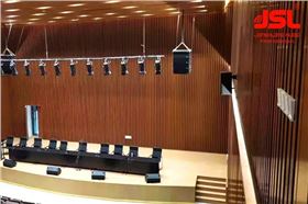 爵士龍團(tuán)隊(duì)經(jīng)過(guò)對(duì)本廳的使用功能分析,考慮使用的音響設(shè)備、場(chǎng)地容積等因素,選用了JSL雙八線陣音響作為主音箱,該產(chǎn)品聲壓疊加,衰減小,傳輸遠(yuǎn),精準(zhǔn)投射,擁有良好的聲場(chǎng)分布和穩(wěn)定的聲音傳遞,可為多功能廳使用者提供優(yōu)質(zhì)體驗(yàn)。
