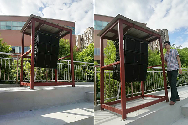 在獲悉學校對音響設備的要求后,工程師在配置舞臺音響系統(tǒng)的時候采用兩串2+1簡易線陣音箱,共四只LAB610加兩只超低音,顧及該線陣音響系統(tǒng)是用于操場上,箱體還做了防水效果。盡心盡責的服務態(tài)度也是讓校方非常滿意。