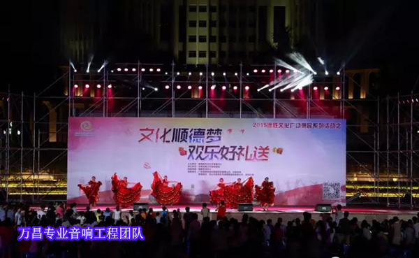 每一場成功演出的背后,都有無數位音響人的艱苦付出。為保證本次文藝匯演的順利進行,項目部負責人王俊明從活動開始的場地策劃、支架安裝,到現場燈光音響設備的設計和安裝調試,每一個細節都力求完美,為的就是給順德觀眾帶來前所未有的視聽感受。